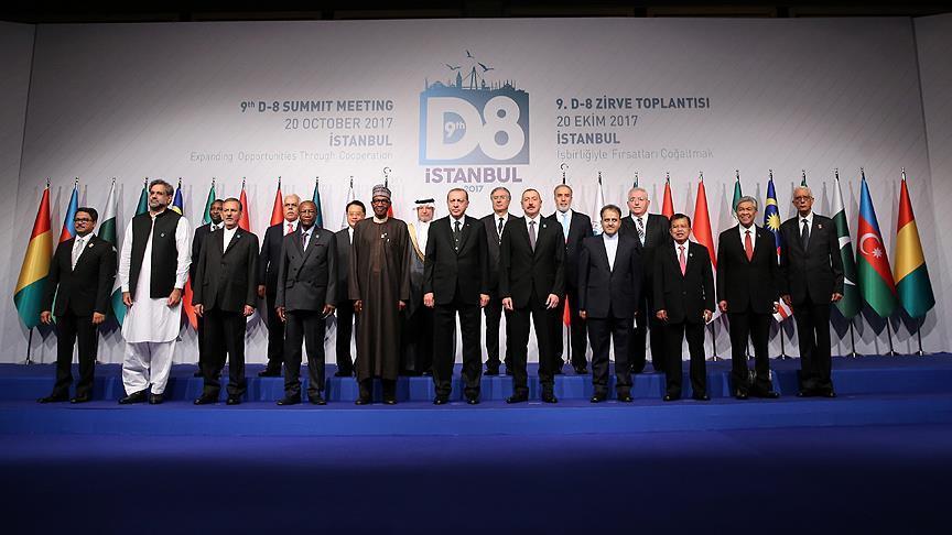 وانطلقت الجمعة القمة التاسعة لمجموعة الدول الثماني الإسلامية النامية في مدينة إسطنبول تحت شعار "زيادة الفرص من خلال التعاون"، وافتتح رئيس الوزراء الباكستاني شهيد خاقان عباسي الجلسة بصفته رئيسا للدورة الثامنة، وسيسلم رئاستها لتركيا.
