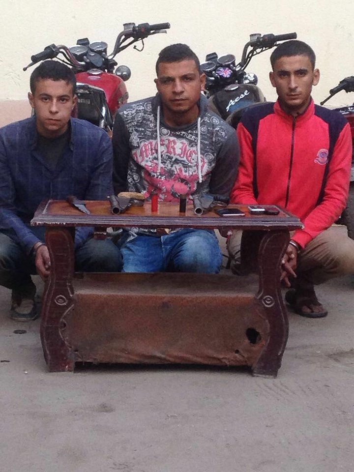 تلقى اللواء رضا طبلية مدير أمن الشرقية إخطارًا من اللواء محمد والي مدير المباحث الجنائية يفيد بتمكن ضباط مباحث مشتول السوق من إلقاء القبض على "زياد أ.م" 18 سنة- عاطل، و"راغب إ.م" 23 سنة- عاطل، و"علاء م.ا" 20 سنة- عاطل، وجميعهم مقيمين بمشتول السوق، لإتهامهم بتكوين تشكيل عصابي تخصص نشاطه فى سرقة الدراجات النارية بالإكراه وضبط بحوزتهم سلاح نارى عبارة عن فرد خرطوش وسلاح أبيض عبارة عن خنجر.
