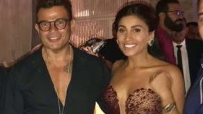 النجم عمرو دياب يغادر بصحبة دينا الشربينى إلى الإمارات