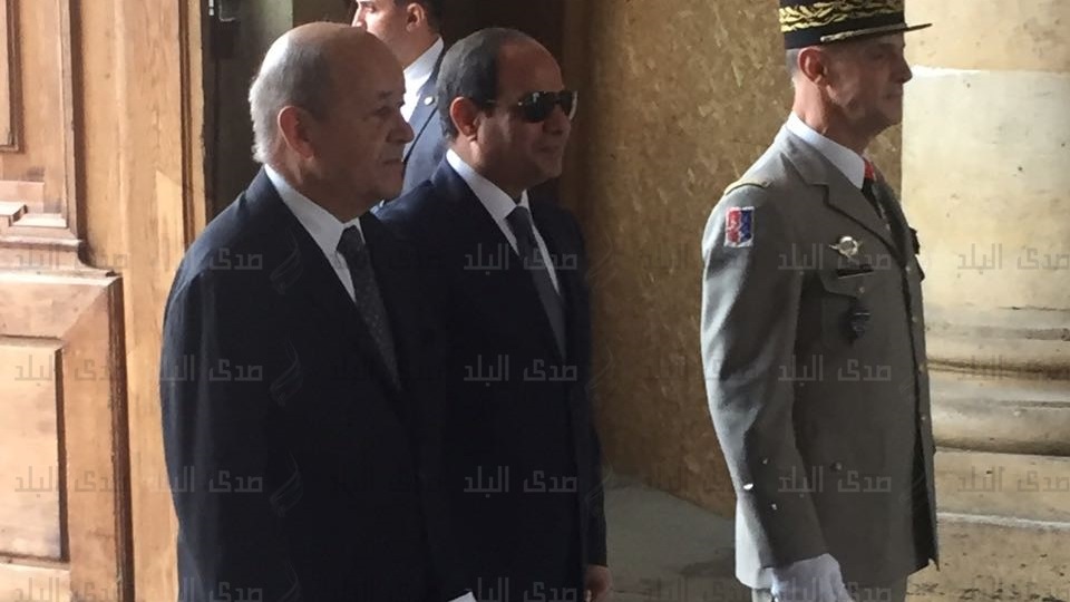 أجريت مراسم استقبال رسمية للرئيس عبدالفتاح السيسى في قصر الانفاليد؛ حيث كان فى استقبال الرئيس وزير الخارجية الفرنسي جان إيف لودريان.