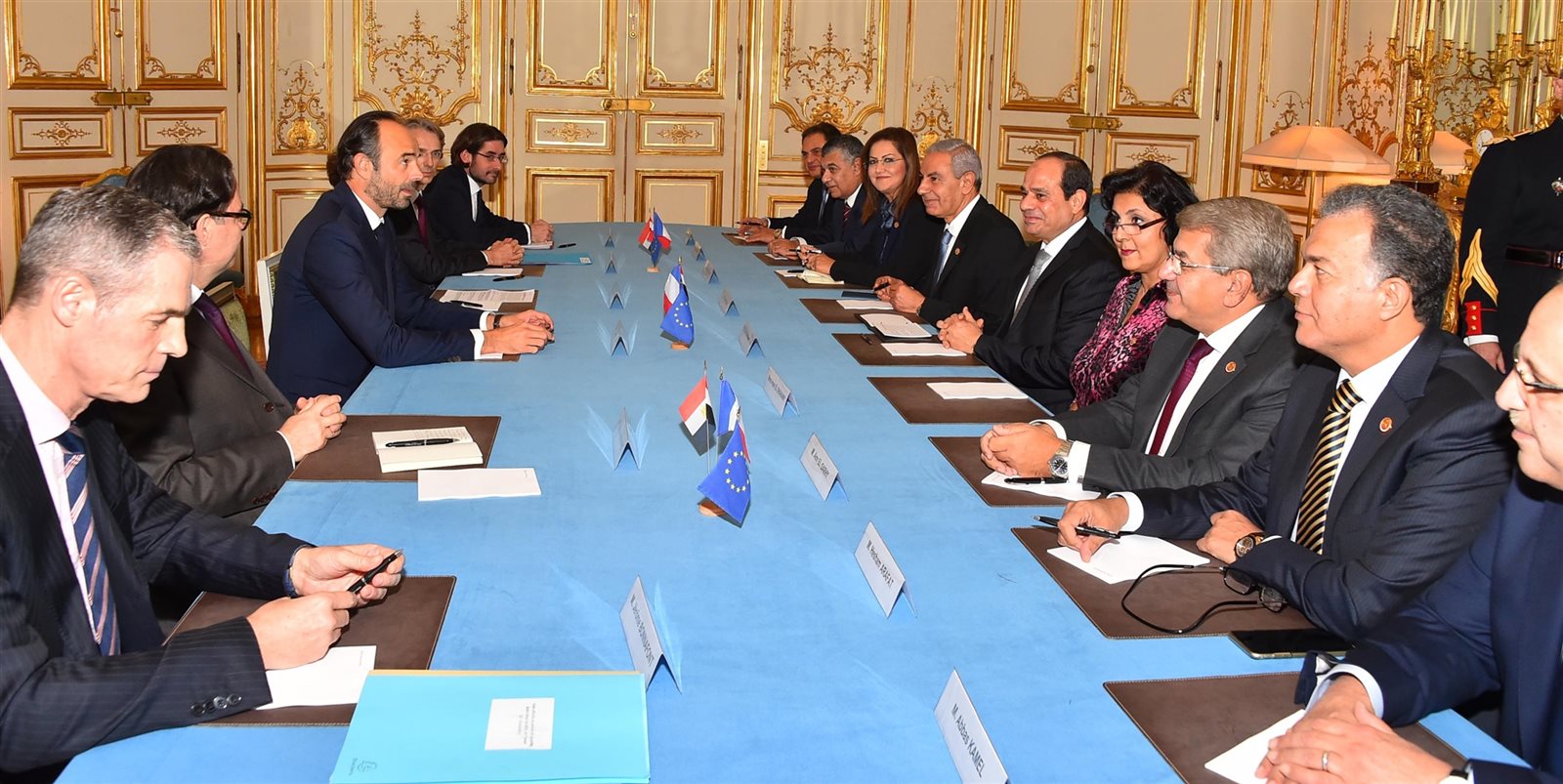 واستعرض الرئيس إجراءات الإصلاح الاقتصادى التى تنفذها الحكومة المصرية، مشيدًا بالتعاون القائم بين البلدين وبنشاط الشركات الفرنسية العاملة فى مصر، والتى بلغت قيمة استثماراتها حوالى 4 مليار يورو بنهاية عام 2016 موزعة على 458 مشروع فى العديد من القطاعات.