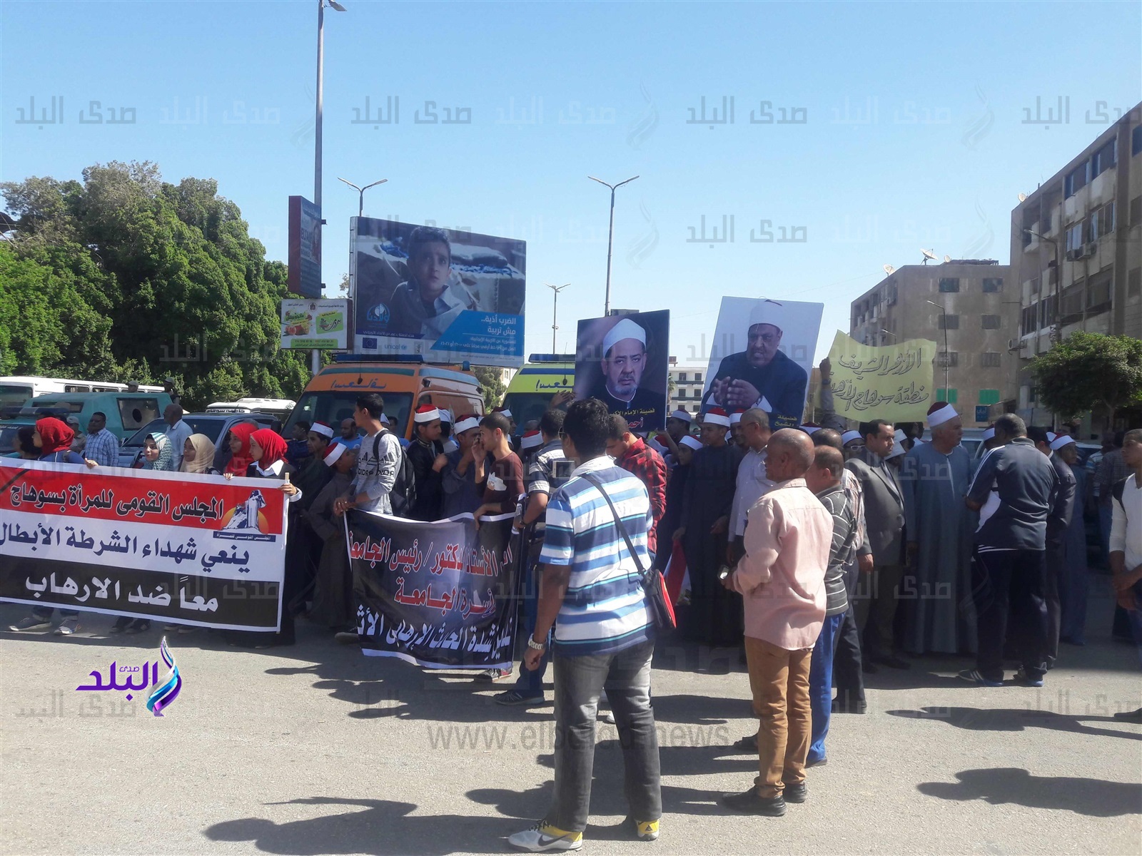 وقاد المسيرة الدكتور ايمن عبدالمنعم محافظ سوهاج واللواء عمر عبدالعال، مدير امن سوهاج والتي ضمت جميع اطياف المجتمع السوهاجى للتنديد بالاعمال الارهابية ودعما لرجال القوات المسلحة والشرطة فى حربهم على الجماعات الارهابية.
