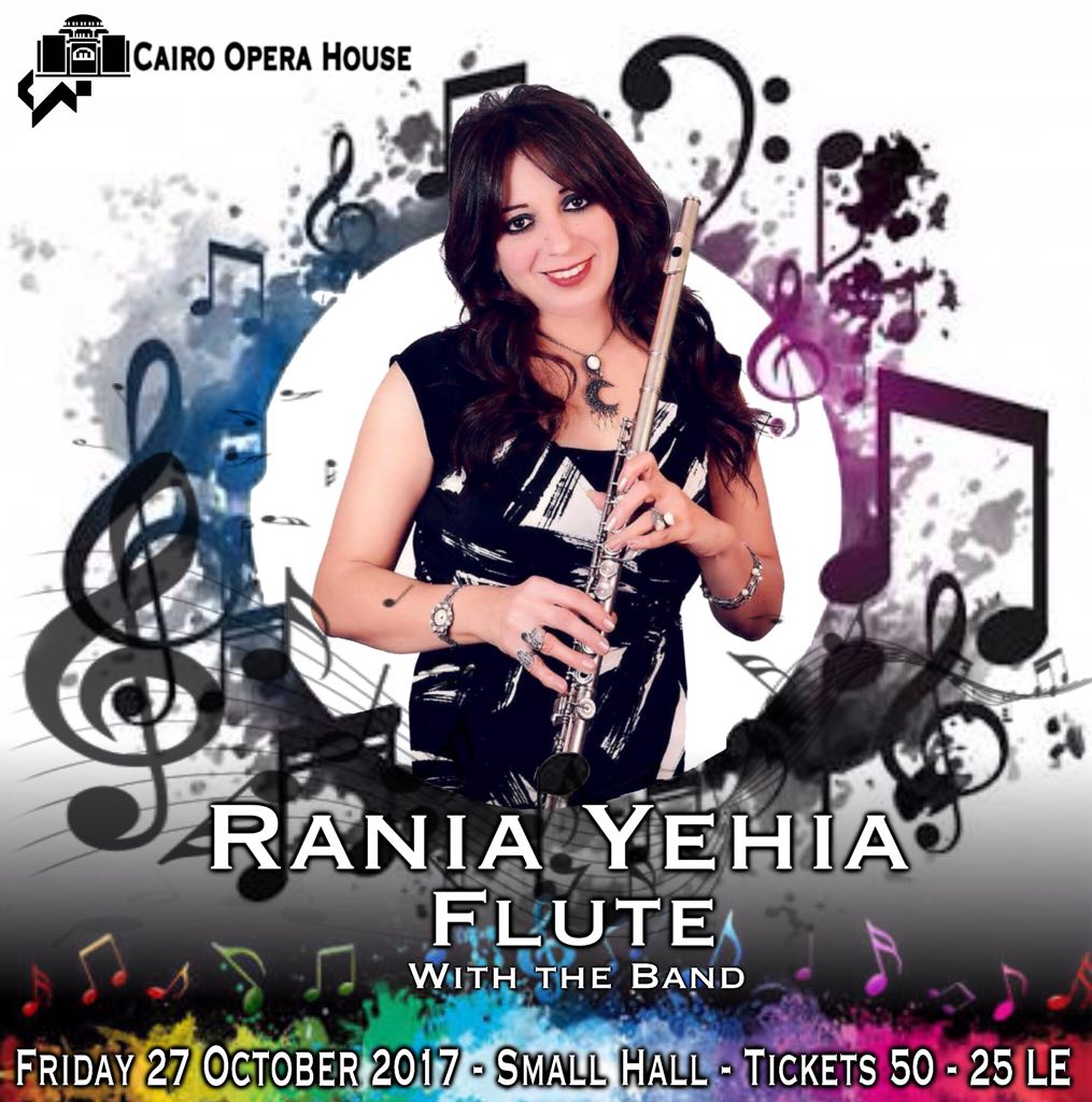 تقدم فراشة الفلوت الدكتورة رانيا يحيى حفلا موسيقيا على المسرح الصغير بدار الأوبرا المصرية وذلك يوم الجمعة الموافق 27 أكتوبر 2017 .