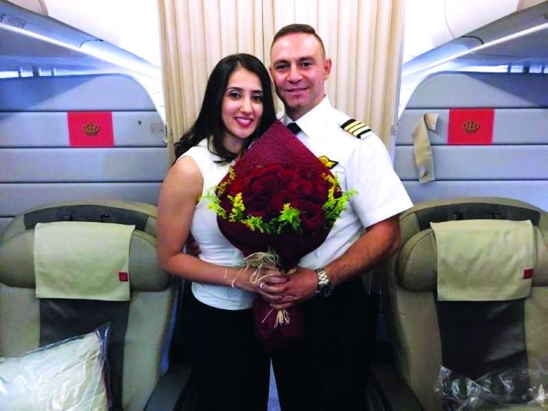 فاجأ مساعد كابتن طائرة «الملكية الأردنية» التي اتجهت ركاب الطائرة بعد إعلان رسالته الترحيبية بطلب خطبة فتاة كانت تجلس بين الركاب.