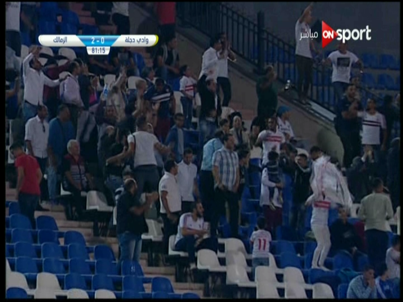 هتف جمهور الزمالك في المباراة التي تجمع الفريق الابيض ومنافسه وادي دجلة الان على ملعب استاد القاهرة الدولي ، في إطار الجولة السابعة من الدوري الممتاز .