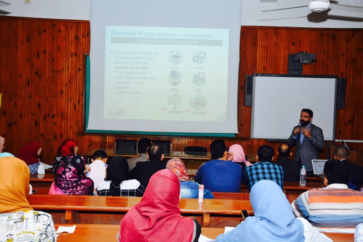 ومن جانبة فقد اكد "خالد الدرندلي" مدير المركز أن هذه الدورات تأتي في إطار أنشطة وحدة المكتبة الرقمية بالتعاون مع المجلس الأعلى للجامعات و عدد من الناشرين والشركات المشاركة ببنك المعرفة المصري ، وسوف يتم تفعيلها بشكل دوري لإفادة الباحثين بالجامعة و النهوض بمستوى البحث العلمي و النشر الدولي في الجامعة ويقوم بالتدريب فريق من المدربين من الشركات العالمية Elsevier - Sage - Dar ElManduma إلى جانب مدربين من وحدة المكتبة الرقمية بالمجلس الأعلى للجامعات .