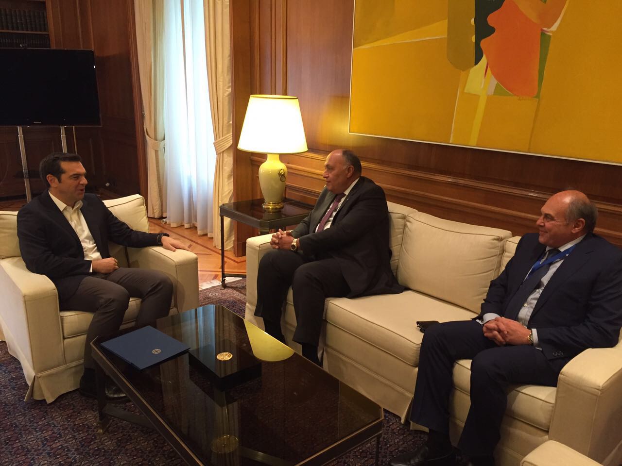 عقد وزير الخارجية سامح شكري لقاءً مع رئيس الوزراء اليوناني أليكسيس تسيبراس بعد ظهر اليوم الثلاثاء في إطار زيارته الحالية للعاصمة اليونانية أثينا للمشاركة في مؤتمر التعددية الثقافية والدينية والتعايش السلمي.