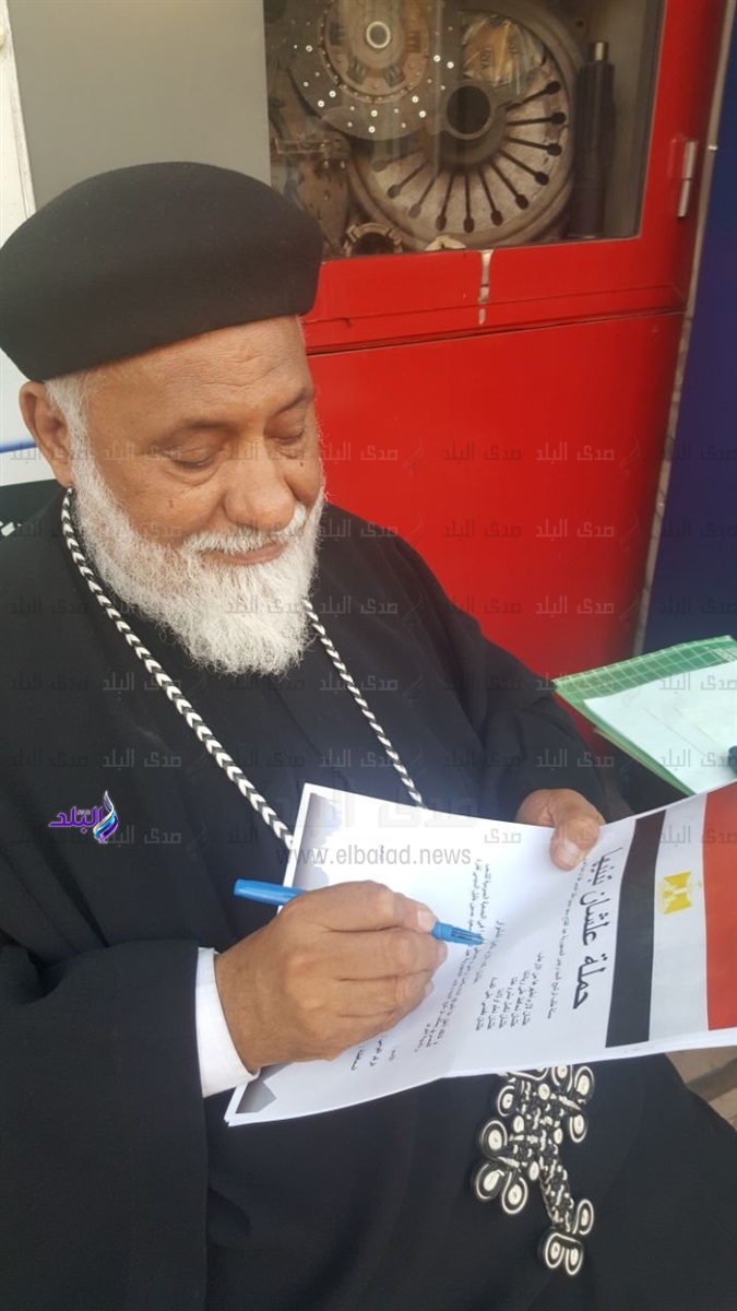 وقع القمص إبراهيم فهمي، كاهن ورئيس بيت العائلة بمحافظة القليوبية، على استمارة حملة «علشان تبنيها» والتي تطالب الرئيس عبد الفتاح السيسي بالترشح لفترة رئاسية ثانية.