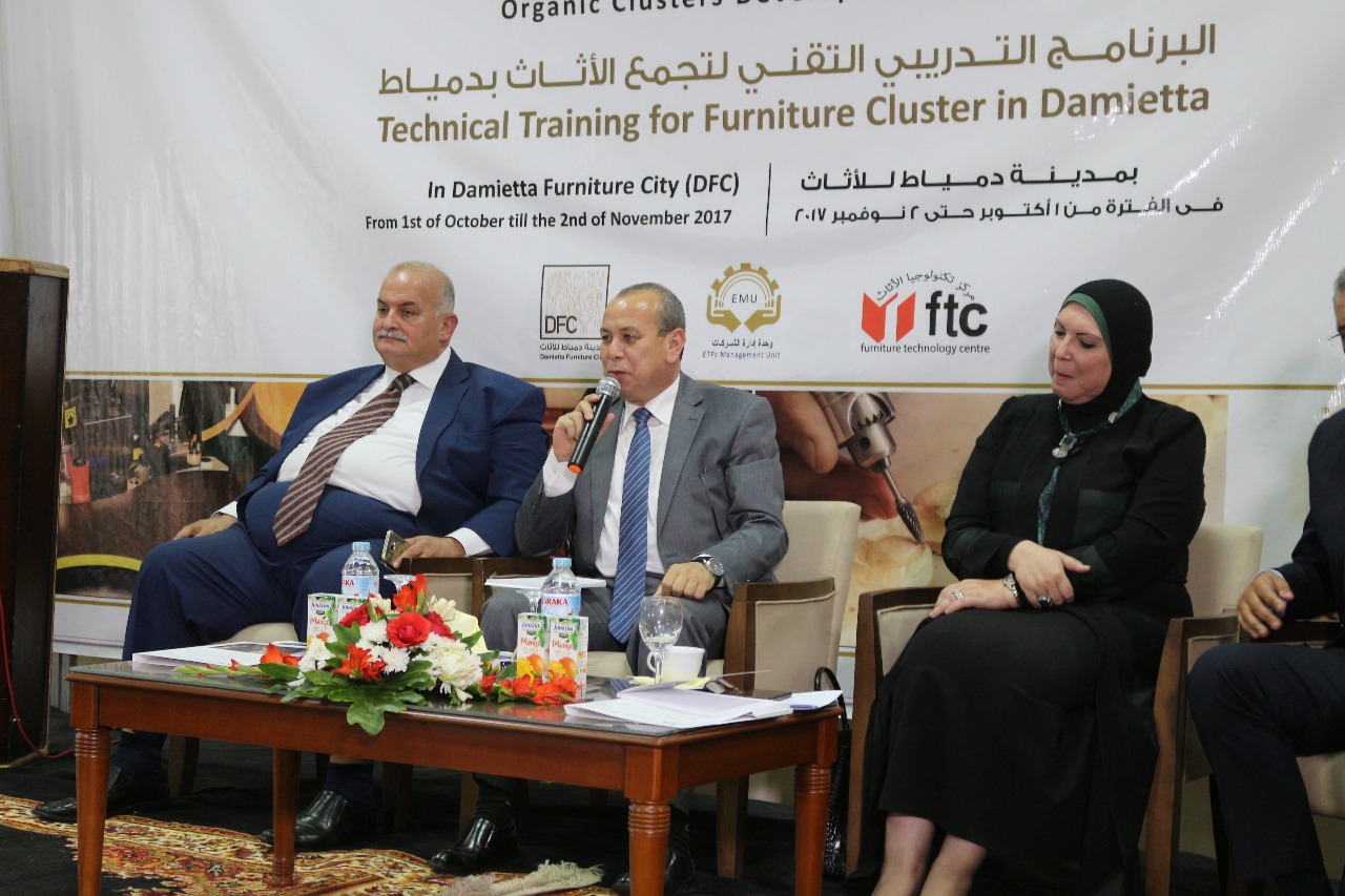 بحضور الدكتور إسماعيل عبد الحميد طه محافظ دمياط شهد مركز تكنولوجيا الأثاث بمدينة دمياط للأثاث فعاليات ختام البرنامج التقنى برعاية جهاز تنمية المشروعات المتوسطة والصغيرة ومتناهية الصغر بحضور أيضا نيفين جامع الرئيس التنفيذى لجهاز تنمية المشروعات المتوسطة والصغيرة ومتناهية الصغر و محمود محرز نائب الرئيس التنفيذى لجهاز تنمية المشروعات المتوسطة والصغيرة ومتناهية الصغر والمهندس معتز بهاء الدين الرئيس التنفيذى لشركة مدينة الأثاث بدمياط ود. رأفت عباس رئيس القطاع المركزى للخدمات غير المالية ، و وائل العاصى مدير فرع جهاز تنمية المشروعات المتوسطة والصغيرة ومتناهية الصغر بدمياط، حيث يضم البرنامج ٥دورات الاستخدامات البديلة للأخشاب الطبيعية ، استخدام الماكينات الحديثة ، التنجيد ، الدهانات والتشطيبات ، التصميمات يهدف الى اعداد متدربين فى المستقبل و انعكاس التدريب على الصناعة .
