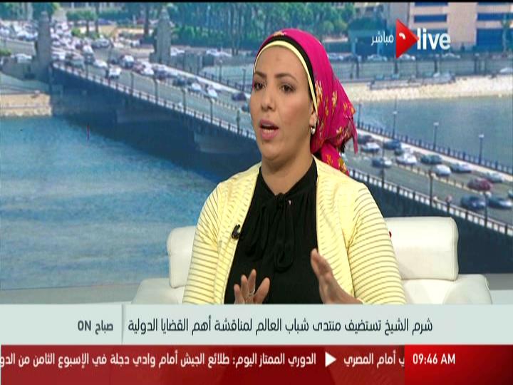 وأَضافت "إبراهيم"، خلال لقائها ببرنامج "صباح أون"، المذاع عبر فضائية "أون لايف"، اليوم، السبت، أن مؤتمر شرم الشيخ سيعود بكثير من النفع على الدولة، خاصة فيما يتعلق بالتنشيط السياحي وجذب الاستثمارات، وسيبث الطاقة الإيجابية من جديد فى نفوس الشباب، خاصة أن المؤتمر سيركز على النماذج الملهمة على مستوى العالم.