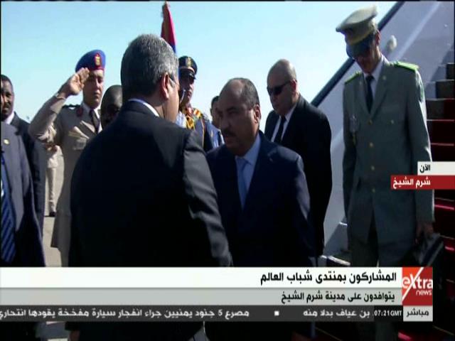 وصل الآن الرئيس الموريتاني محمد ولد عبد العزيز، إلى مطار شرم الشيخ الدولي للمشاركة في فعاليات منتدى شباب العالم والمقرّر افتتاحه اليوم الأحد تحت رعاية الرئيس عبد الفتاح السيسي.
