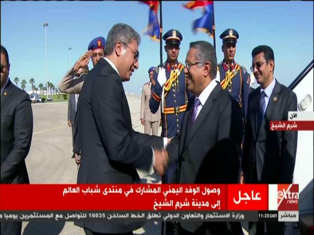 وصل الوفد اليمني إلى مطار شرم الشيخ الدولي، اليوم، للمشاركة في فعاليات منتدى شباب العالم والمقرّر افتتاحه اليوم الأحد تحت رعاية الرئيس عبد الفتاح السيسي.
