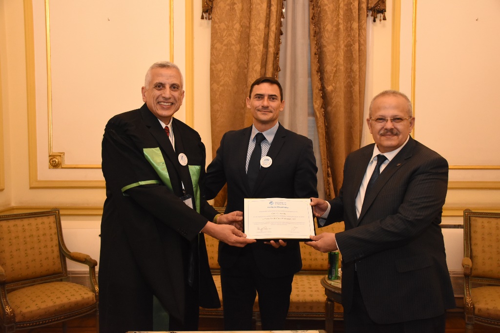 رئيس جامعة القاهرة يتسلم شهادة الاعتماد الدولى لكلية العلاج الطبيعي