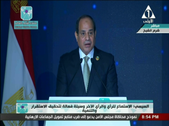 أعلن الرئيس عبد الفتاح السيسي، انحيازه الكامل لتوصيات منتدى شباب العالم المنعقد بشرم الشيخ وقال إن أهم هذه التوصيات هى تكليف اللجنة المنظمة وتحت إشراف مكتب الرئاسة بتحويل المنتدى إلى مركز دولى معنى بالحوار العربي الإفريقى الدولى بين شباب العالم وذلك من أجل السلام والتنمية.