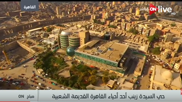 عرض برنامج "صباح أون" المُذاع عبر فضائية "on live"، صباح اليوم، السبت، لقطات جوية مصورة عن طريق كاميرا "درون" الطائرة، ترصد إطلالة علوية من حي السيدة زينب بالقاهرة.