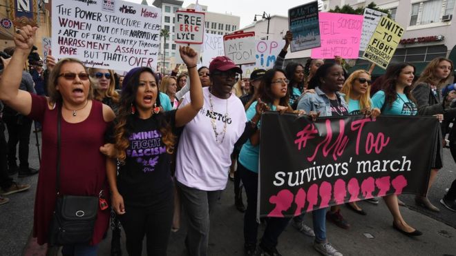 وتأتي مسيرة هاشتاج "مي تو" بعد سلسلة من الاتهامات التي أعلنها رجال ونساء قالوا إنهم كانوا ضحية تحرش جنسي من شخصيات نافذة في صناعة الترفيه، ولكن المشاركين في المسيرة قالوا إنهم يمثلون أيضا رجالا ونساء تعرضوا لانتهاكات جنسية وهم أطفال وفي مواقف أخرى.