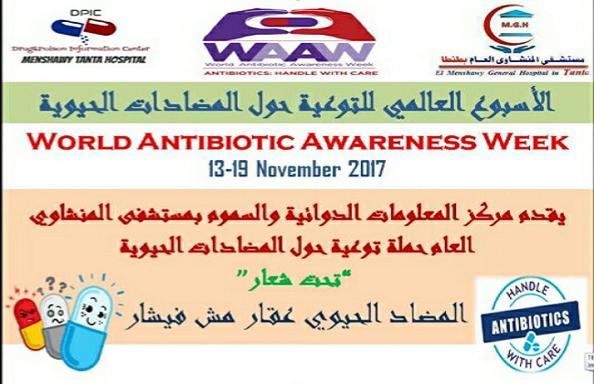 أعلن مركز المعلومات الدوائية والسموم بمستشفى المنشاوى العام بطنطا اليوم الثلاثاء حملة توعية للعاملين والمرضى حول استخدام المضادات الحيوية تحت شعار " المضاد الحيوى عقار مش فيشار".