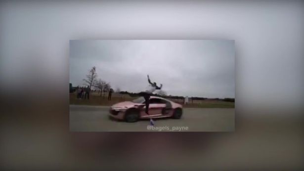 سيارة رياضية تدهس مغامرا حاول القفز أمامها.. فيديو وصور