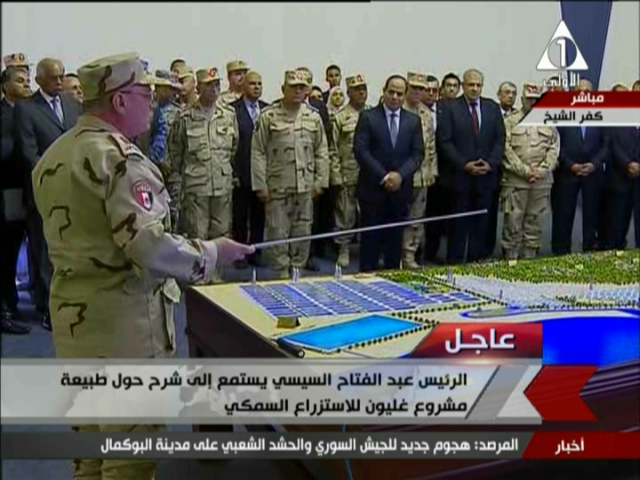 استمع الرئيس عبد الفتاح السيسي إلى شرح مفصل حول طبيعة مشروع غليون للاستزراع السمكي المتكامل، وذلك على هامش جولته التفقدية خلال افتتاحه له اليوم، السبت، في محافظة كفر الشيخ.