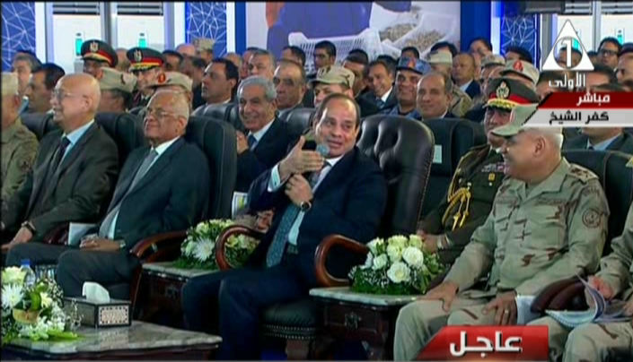 وأوضح الرئيس السيسي أن الجيش موجود حتى يساهم في خطة التنمية كذراع آخر للمجهود المطلوب من الحكومة والقطاع الخاص، وهو يساهم فقط في تقليل الفترة الزمنية لتلبية الأغراض والأهداف المطلوبة.