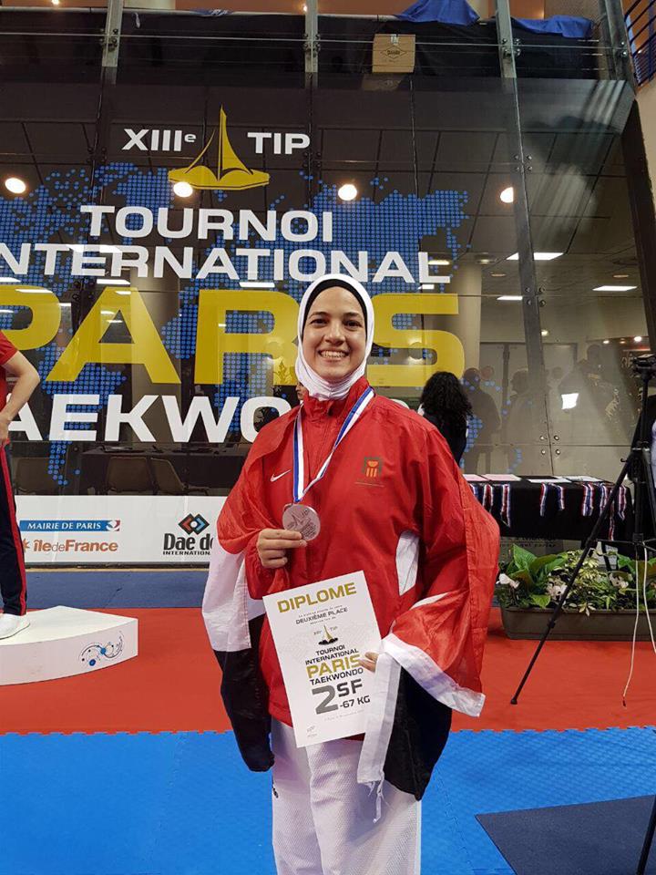 هداية ملاك تتوج بفضية بطولة فرنسا الدولية للتايكوندو