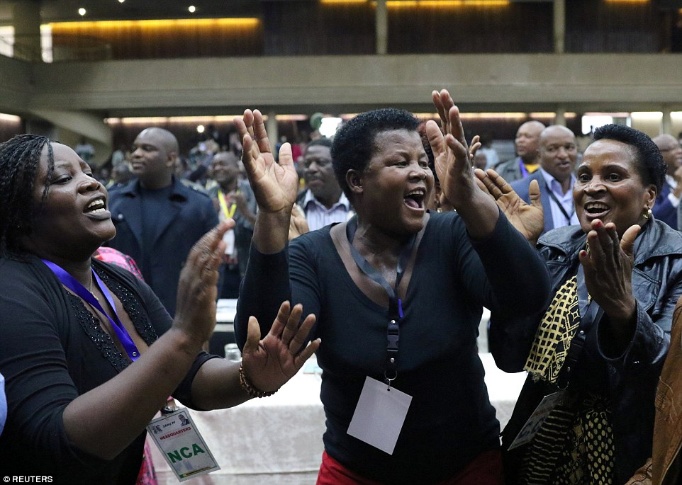 نشرت صحيفة "ديلى ميل" البريطانية؛ صورا ومقاطع مصورة للاحتفالات التي عمت زيمبابوى عقب إعلان اللجنة المركزية لحزب (الاتحاد الوطني الأفريقي الزيمبابوي - الجبهة الوطنية) خلال الاجتماع الاستثنائى إقالة الرئيس روبرت موجابي من زعامة الحزب اليوم الأحد ليحل محله إمرسون منانجاجوا وهو نائب الرئيس الذي عزله موجابي هذا الشهر.