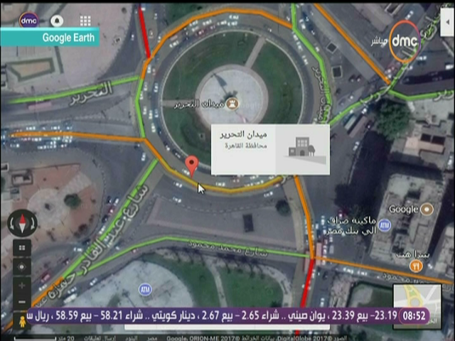 عرض برنامج "8 الصبح" المُذاع عبر فضائية "dmc"، صباح اليوم، الثلاثاء، لقطات من خرائط "جوجل ماب" للحالة المرورية بالعاصمة، حيث تلاحظ وجود سيولة مرورية في طريق ميدان التحرير وكورنيش النيل.