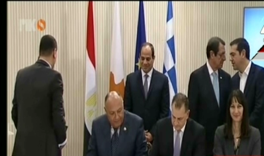وجاء توقيع اتفاقيات تعاون بين مصر وقبرص واليونان بحضور الرئيس عبد الفتاح السيسى ونظيره القبرص ورئيس الوزراء اليونانى.