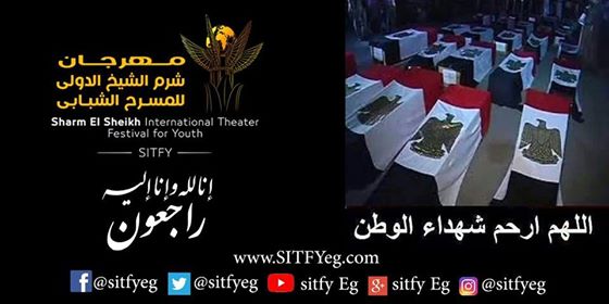 أصدر مهرجان شرم الشيخ الدولي للمسرح الشبابي بيان إدانة ضد العمل الإرهابى الخسيس الذى استهدف مسجد الروضة بالعريش وبأشد عبارات الغضب والإستنكار ادان مجلس إدارة المهرجان بالكامل تلك الجريمة البشعة التي أقدم عليها مجموعة من الإرهابيين.