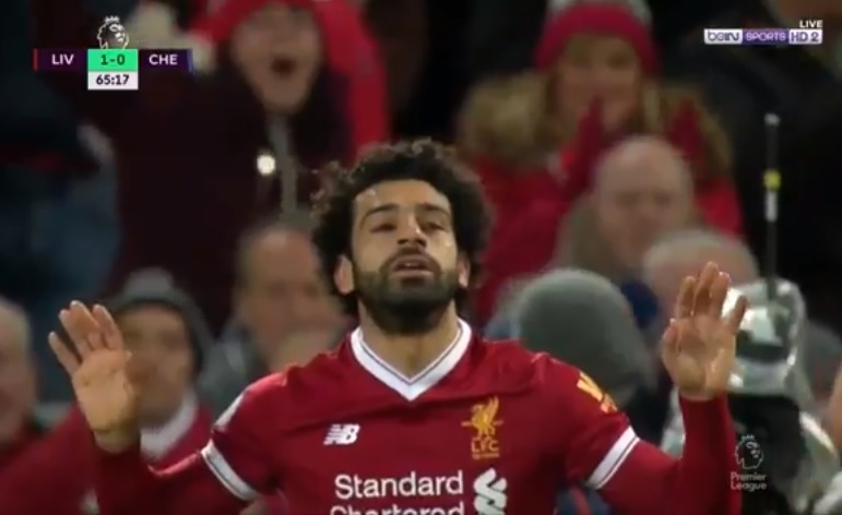 ورفض صلاح الاحتفال بهدفه لسبيين ، الأول هو حالة الحزن عقب استشهاد أكثر من 300 شخص في الحادث الارهابي في مسجد الروضة بمدينة بئر العبد وحالة الحداد في مصر، أما السبب الثاني فهو أنه سجل الهدف في مرمى فريقه الأسبق تشيلسي والذي لعب بين صفوفه لمدة عام ونصف وتزامل مع معظم لاعبي الفريق الحالي.