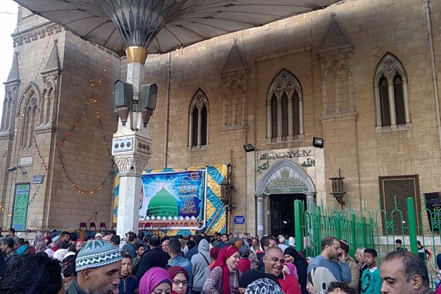 توافد العشرات من مريدى الطرق الصوفية، والمواطنين، الى مسجد الإمام الحسين بالقاهرة للمشاركة في احتفالات المولد النبوى الشريف، وامتلأت ساحة المسجد، وعمت الاحتفالات أنحاء المكان.