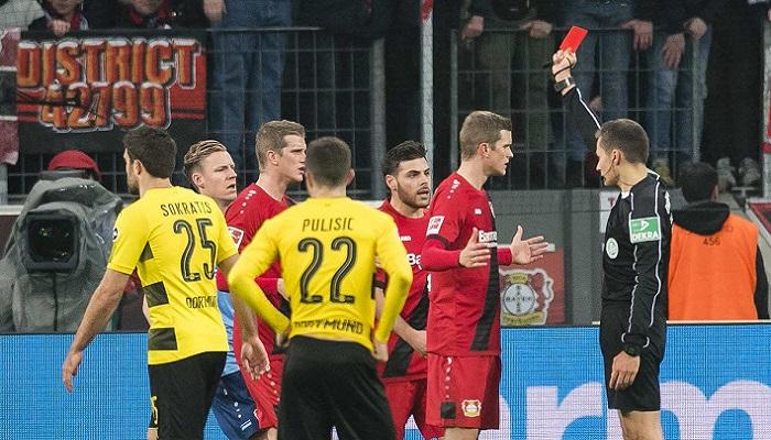 نجح روبرت هارتمان حكم مباراة باير ليفركوزن ونظيره بروسيا دروتموند التى أقيمت اليوم فى الجولة الـ14 بالدورى الألمانى , وانتهت بالتعادل 1 / 1 فى استغلال تقنية الفيديو ليحول بطاقة صفراء أشهرها في وجه البرازيلي فيندل لاعب ليفركوزن إلى بطاقة حمراء .