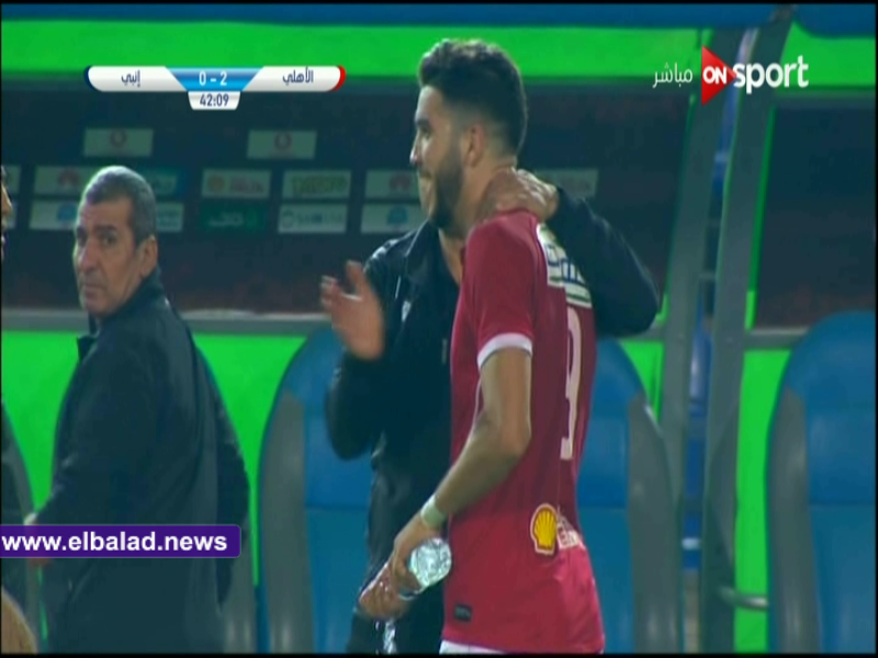 حرص حسام البدري،المدير الفني لفريق النادي الاهلي،على مواساه مهاجمه المغربي وليد ازارو خلال لقاء الفريق الاحمر مع فريق إنبي الذي يقام بالوقت الحالي على استاد القاهرة الدولي في اطار الجولة الثانية عشرة من منافسات الدوري الممتاز.