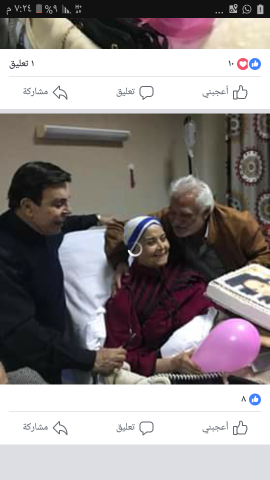 وأضاف الصريطى قائلا : تعتبر الفنانة الوحيدة التى يتم الاحتفال بها طوال شهر ديسمبر فعندما قمت بالاتصال بمن اعرف انهم الاقرب لها لم تسمح ظروفهم بالتواجد فى موعد محدد فحضرت ميرفت امين فى الرابعة عصر يوم ميلادها وقررت نبيلة عبيد الاحتفال بعيد ميلادها فى الرابع من ديسمبر وحضرت فى الخامسة فى انتظار سمير صبرى الذى حضر فى الخامسة والنصف مغنيا بصوته اغانى عيد الميلاد واستقبلت مكالمة من وزير الثقافة حلمى نمنم لتهنئتها بعيد ميلادها ودقائق وحضرت ادارة المنتجع الطبى للمشاركة فى الاحتفال.. وبشخصيتها القوية الحنونة التى اعتدنا عليها كانت تدير الاحتفال واستقبال ضيوفها من سريرها ،، وكلما رأيت السعادة و الفرحة على وجهها زادت سعادتى اضعافا داعيا المولى عز وجل أن يخفف آلامها ويهبها الصحة والعافية ونستمر فى الاحتفال بعيد ميلادها طوال شهر ديسمبر وكل عام وانتم بخير".