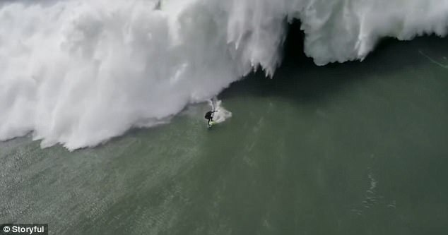 وسحقت الموجة ركبها بسرعة 45 ميلًا فى الساعة، بعدما سقطت عليه من ارتفاع 70 قدمًا، ولحسن الحظ لم يلق حتفه جراء هذا التحدى المميت فى ساحل "نازارى" بالبرتغال.