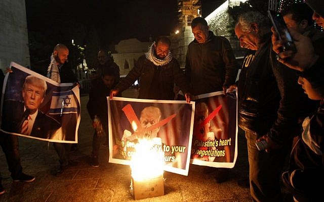 وبينت الصحيفة أن فلسطينيين أحرقوا صورة الرئيس الأمريكي، دونالد ترامب في مدينة بيت لحم بالضفة الغربية، مساء الثلاثاء، مع تزايد الغضب بشأن الإعلان المرتقب لترامب باعتراف الولايات المتحدة بالقدس عاصمة لإسرائيل ونقل السفارة الأمريكية إليها.