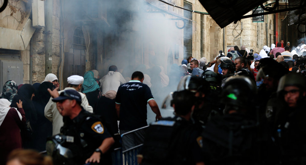 اندلعت الآن اشتباكات عنيفة بين شبان فلسطينيين وقوات الاحتلال الإسرائيلي بعد توافد الآلاف من مرابطي المسجد الأقصى للاحتشاد أمام باب العمود، تنديدًا بقرار الرئيس الأمريكي دونالد ترامب.