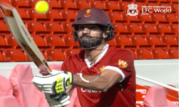 ودخل اللاعبون الثلاثة في تحدي في لعبة "الكريكيت" داخل ملعب الفريق بحيث يلعب كل منهم كرة التنس بضربة قوية بمضرب الكريكيت ويفوز اللاعب صاحب أكبر مسافة لإبعاد الكرة.