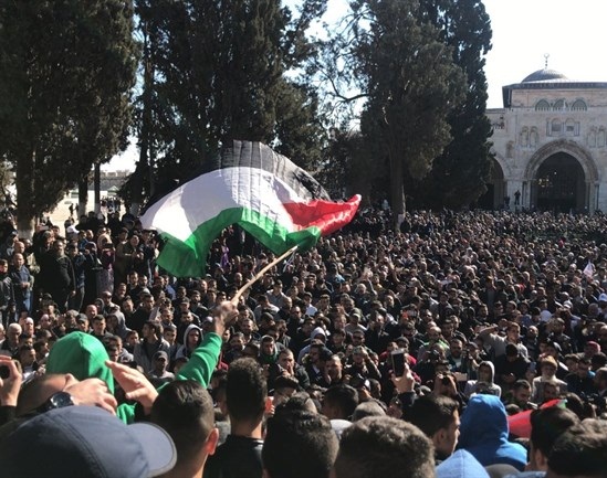 انطلقت مسيرة عقب صلاة الجمعة من داخل المسجد الاقصى شارك فيها الآلاف من المصلين.