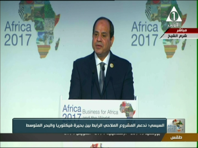 وأكد الرئيس السيسي حرص مصر على الدعوة لعقد الدورة الثانية لمنتدى افريقيا 2017، ليكون أن يكون ملتقى لتبادل الأفكار والخبرات وللعمل معًأ على تطوير آليات تسهيل الاستثمار، بهدف تعظيم الاستفادة مما تذخر به قارتنا من إمكانات هائلة وقوة بشرية شابة تتطلع بأمل نحو مستقبل أفضل.