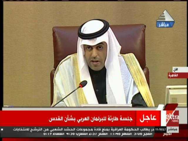 وأضاف خلال الجلسة الطارئة للبرلمان العربي بشأن القدس، اليوم الاثنين، أن القدس ملك لأبناء هذه المنطقة عربا ومسلمين ومسيحيين ليست مجرد قطعة أرض على خريطة العالم، بل لها رمزيتها ومكانتها الدينية والتاريخية، وليست محلا للتنازل أو المقايضة فهي عاصمة أبدية لفلسطين وشعبها، داعيا لوضع خطة تحرك عربية لاقامة دولة فلسطينية عاصمتها القدس الشريفة، معلنا عن تسمية دورة الانعقاد الحالية للبرلمان العربي بالقدس عاصمة أبدية لفلسطين.