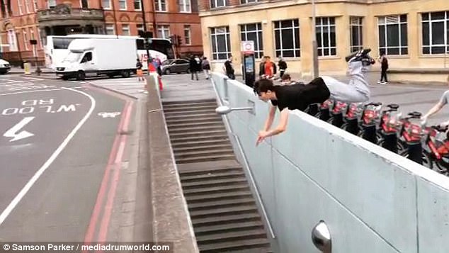 وقالت صحيفة ديلي ميل البريطانية، إنه قد تم تصوير مراهق يبحث عن التشويق بأداء تقلبات وخدع خطيرة بالقفز من السلالم والنوافير المرتفعة عن الأرض.