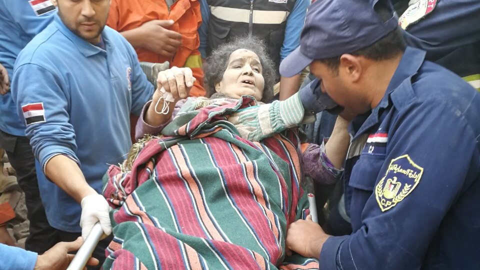 وكانت وحدات الدفاع المدني تمكنت من إنقاذ 4 مصابين من الموت بينما توفيت كل من صباح عبد المنعم محمد 45 سنة وهنا طه ياسين 5 سنوات وجاري إستكمال أعمال البحث عن أحياء أسفل أنقاض العقارات المنهارة.