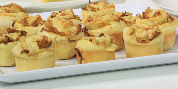 * تلف على شكل رول ثم تقطع عرضيًا لشرائح عريضة وتوضع في قوالب الكب كيك المدهونة بالزيت والدقيق