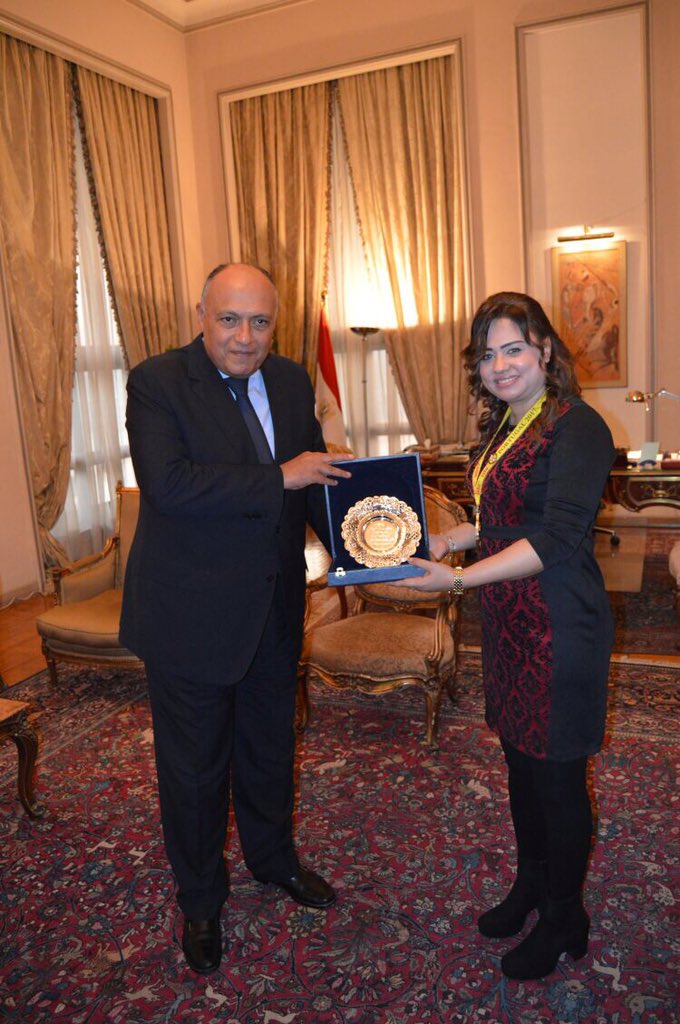 سامح شكري يهدي درع وزارة الخارجية لـ رانيا صابر بطلة العالم في الكيك بوكسنج
