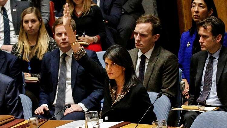 ورفضت هايلي الاتهامات بعرقلة الولايات المتحدة لعملية السلام.