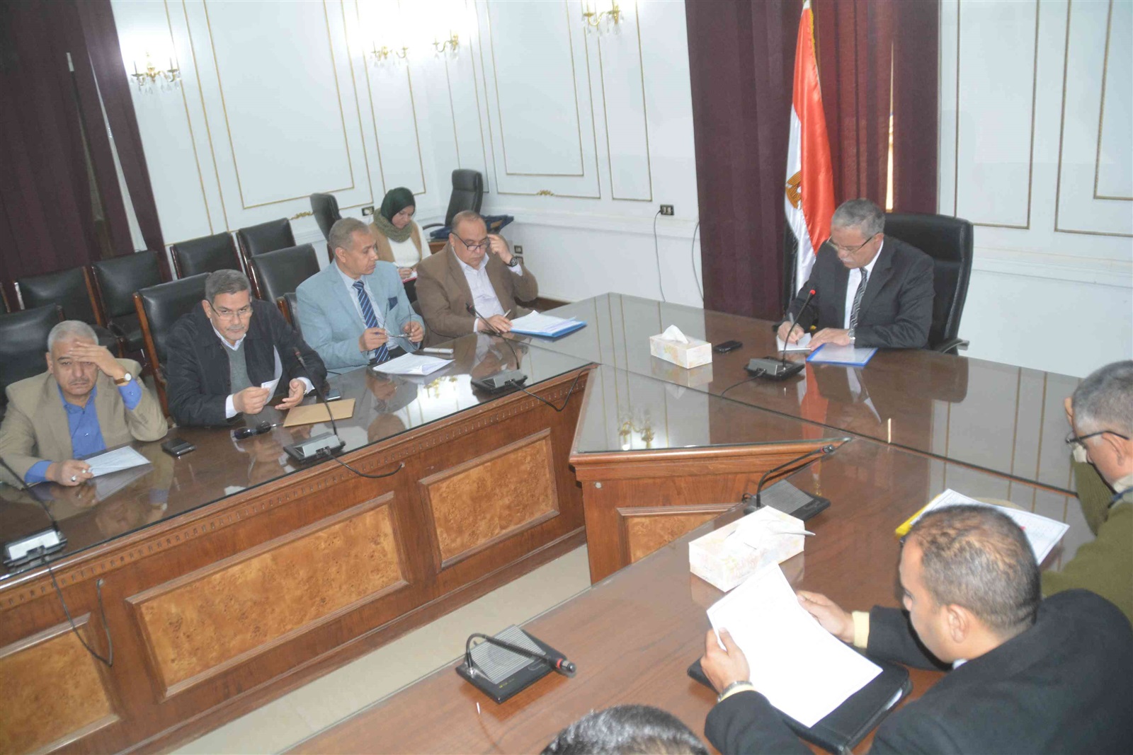 محافظ المنيا يناقش مع لجنة استرداد الاراضي اجراءات التصرف في أملاك الدولة الخاصة
