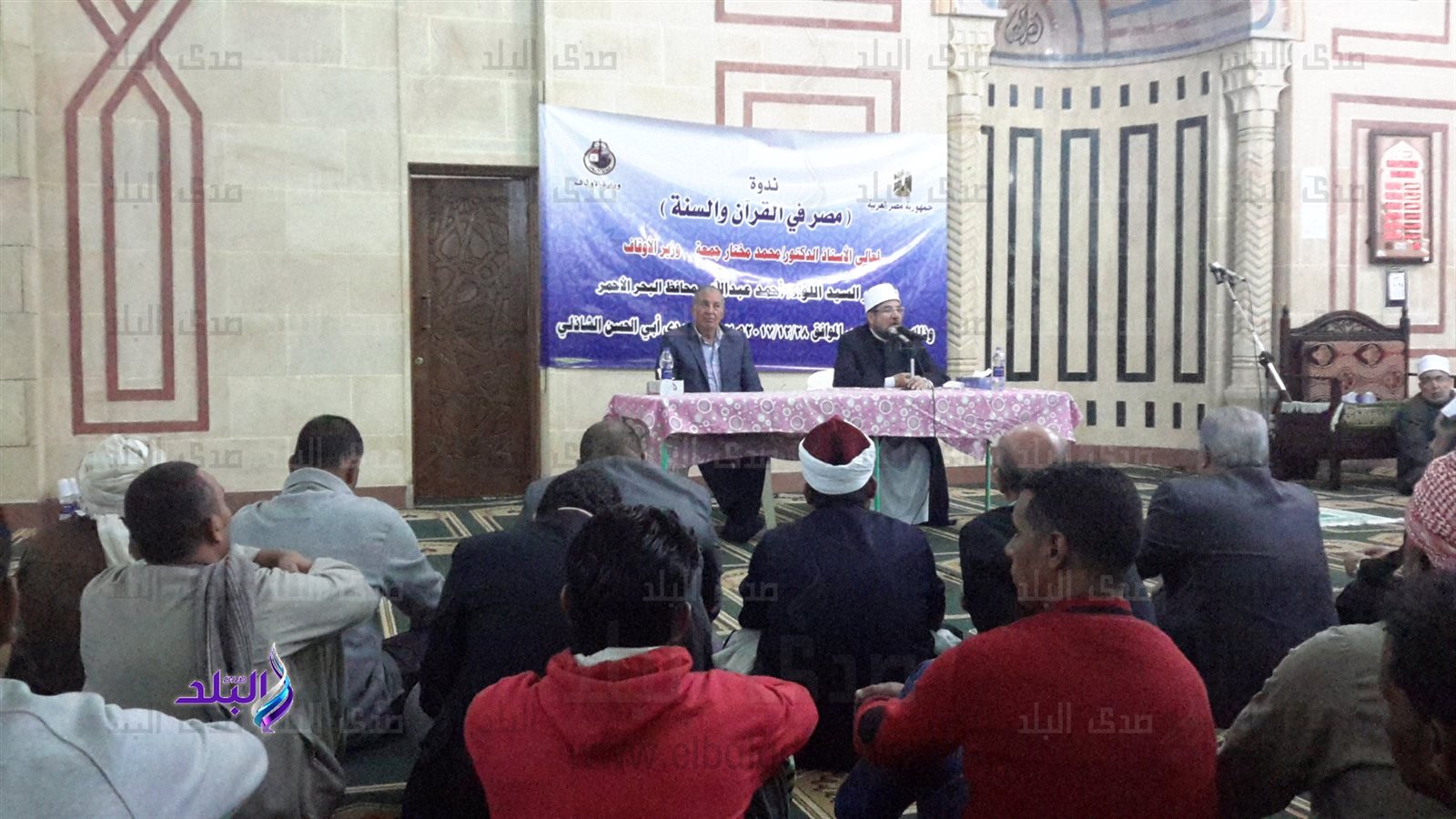 أدى وزير الأوقاف الدكتور محمد مختار جمعة صلاة المغرب والعشاء بمسجد العارف بالله أبو الحسن الشاذلي بقرية الشيخ الشاذلى بمرسى علم وألقى وزير الأوقاف ندوة بعنوان مصر فى القرآن والسنة وذلك عقب صلاة المغرب بساحة المسجد بحضور محافظ البحر الأحمر اللواء أحمد عبدالله وقيادات البحر الأحمر التنفيذية وقيادات مديرية الأوقاف.