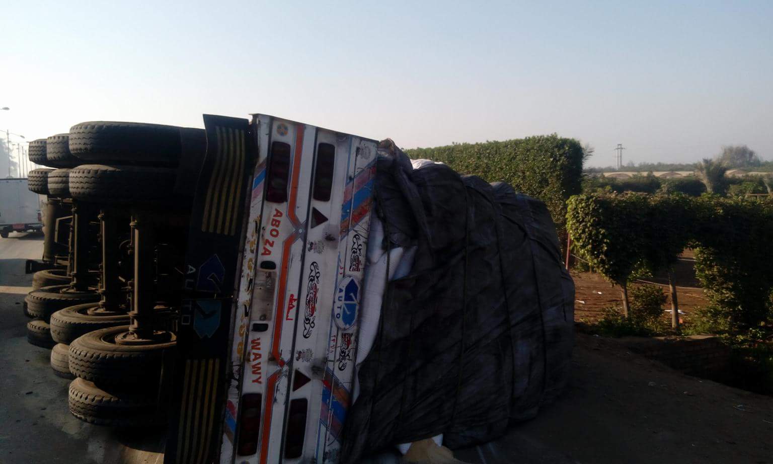 انقلاب سيارة نقل على طريق المنصورة - بنها