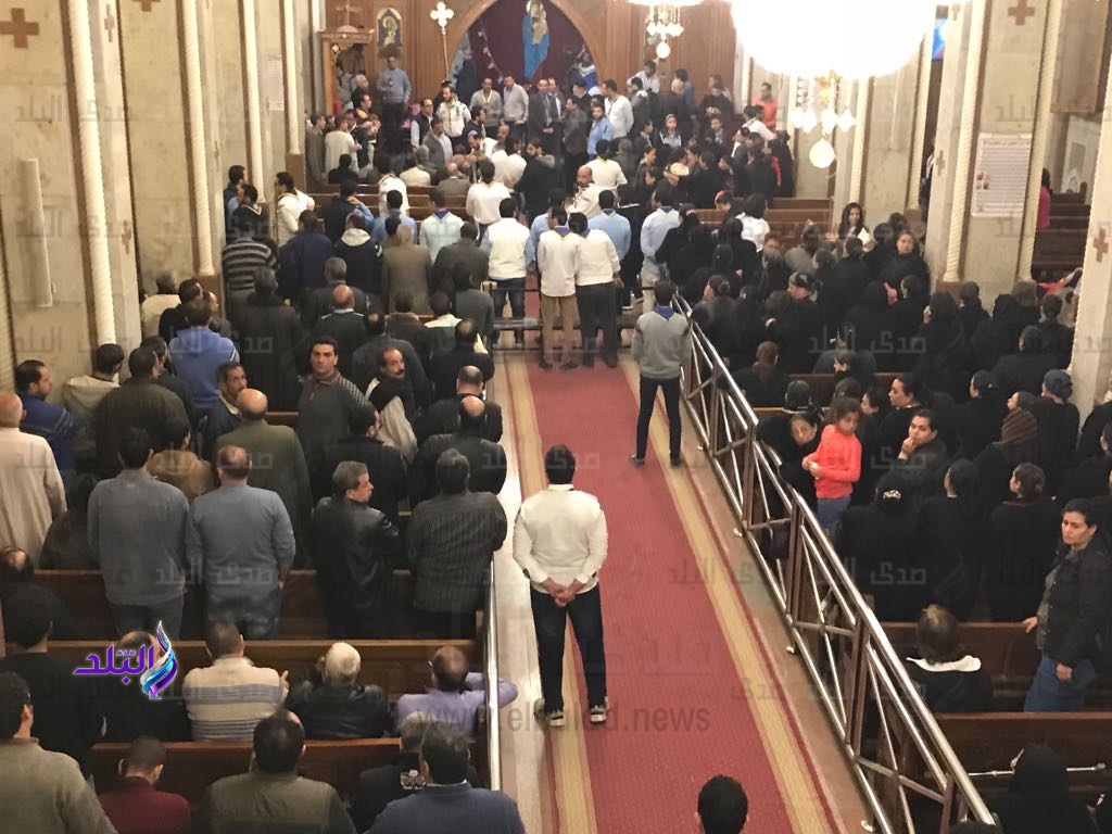داخل كنيسة العذراء مريم التي احتشد بها مئات المواطنين من اهالي المنطقة لحضور الصلاة الاخيرة علي أرواح الشهداء، تعالت الصيحات فوق أصوات الصراخ والعويل مرددين "كيرياليسون"، طالبين من الله ان يرحم الشهداء ويتغمدهم برحمتهم .. دقائق معدودة وفتحت الكنيسة أبوابها لدخول جثامين الشهداء حيث اهتزت حلوان لأصوات الأجراس والتصفيق الحار من أهلية الشهداء والحضور بالكنيسة بالداخل والخارج.